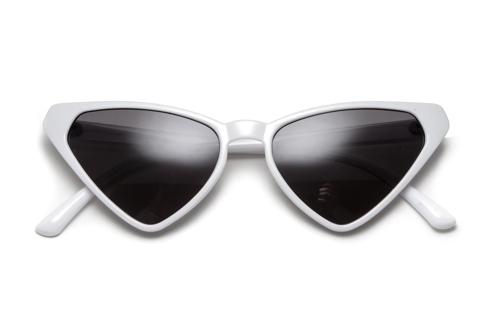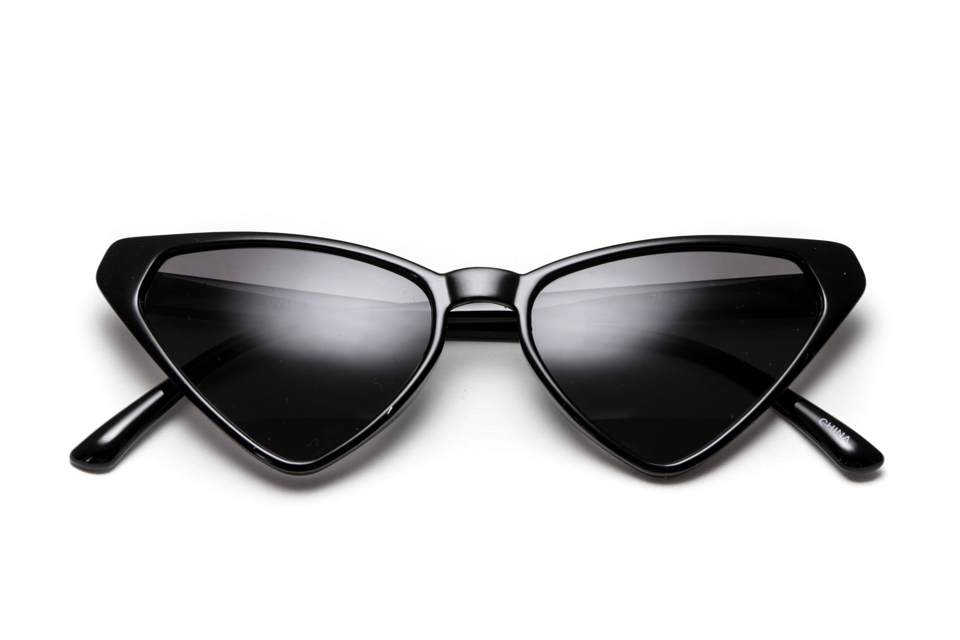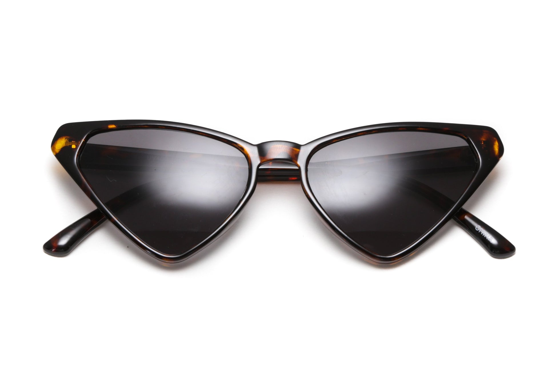 Unique cat eye style darkened lenses with smoothed ends frames and matching temples made for the wild at heart.